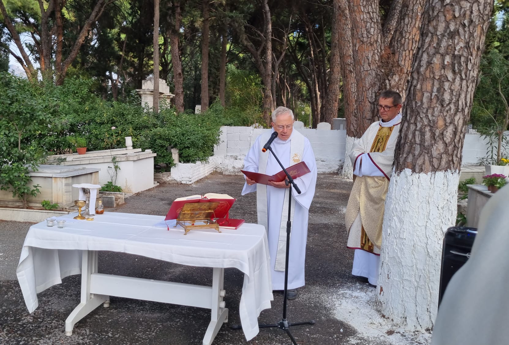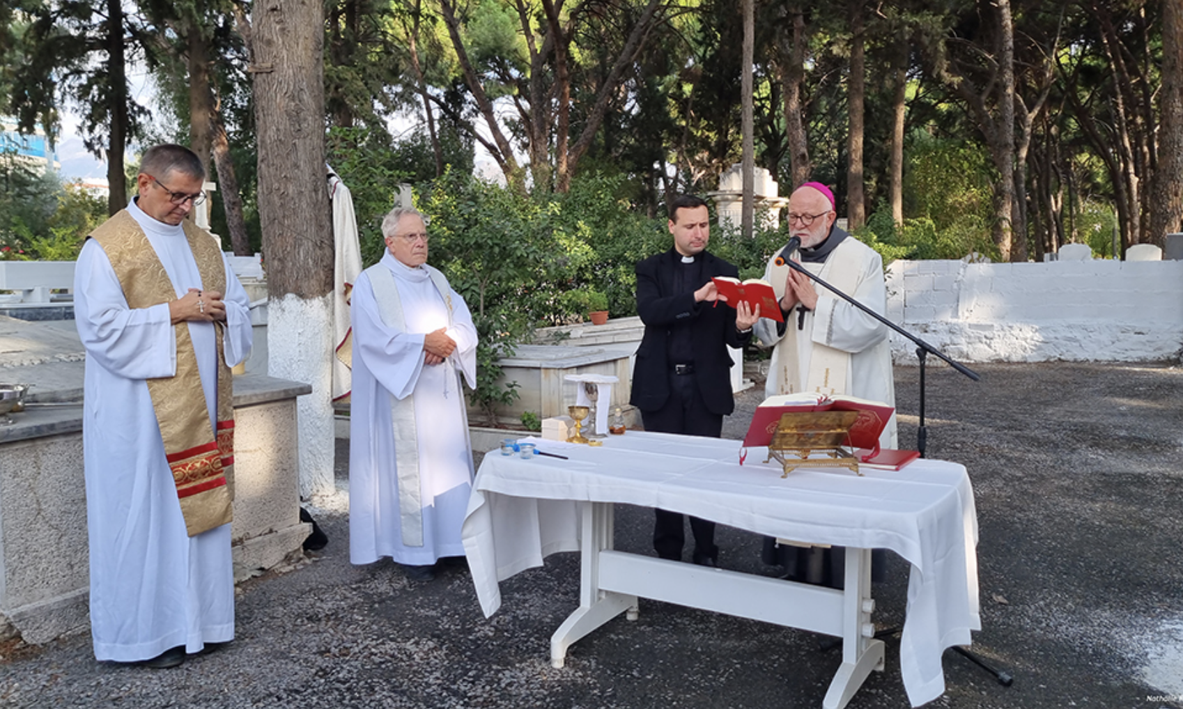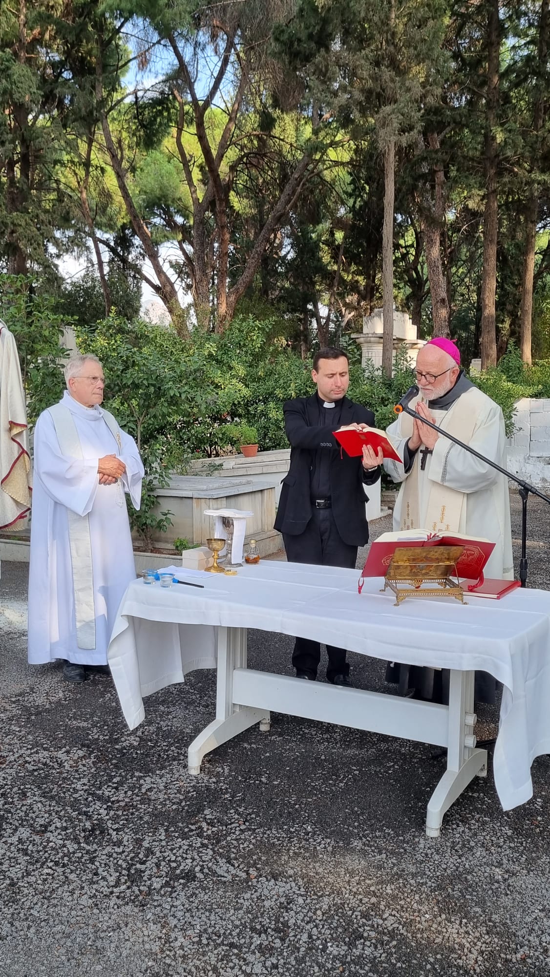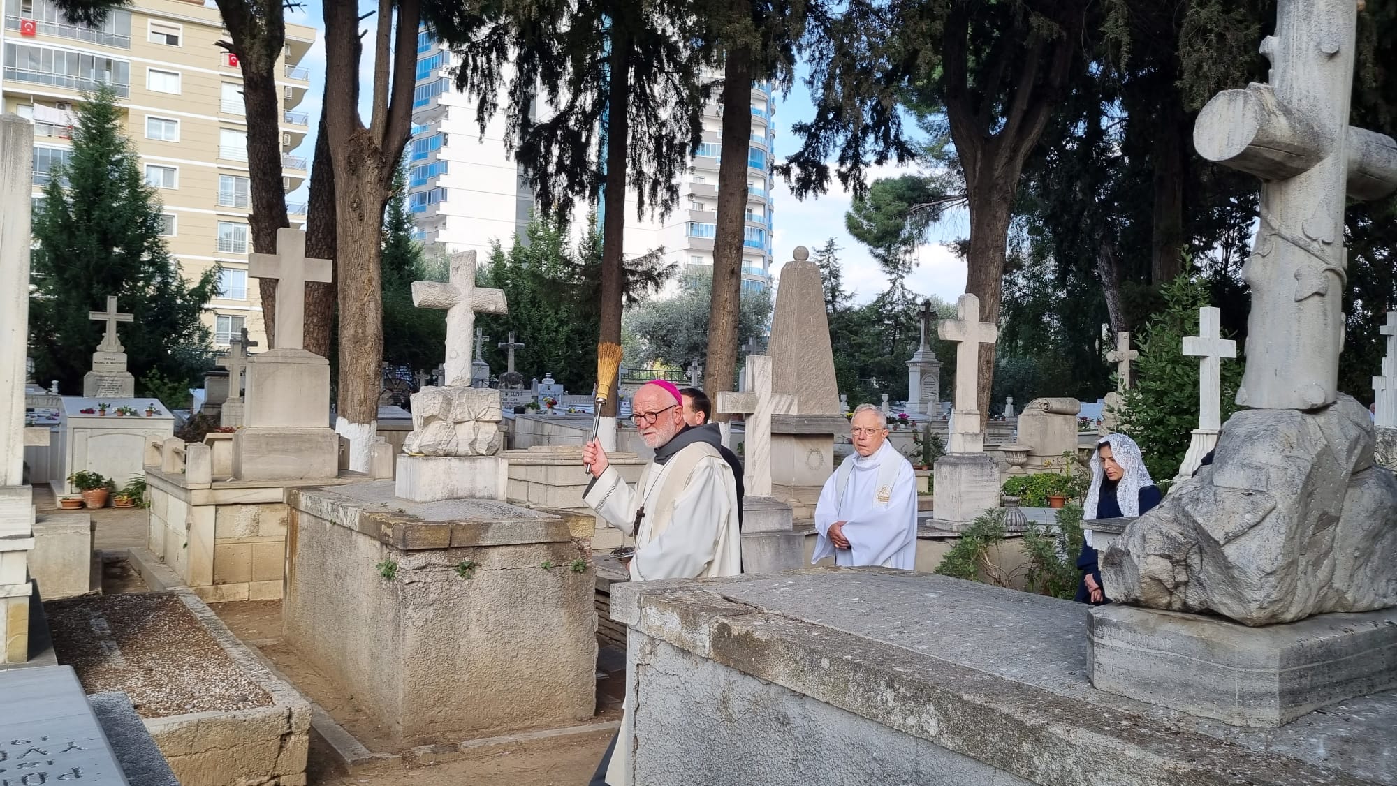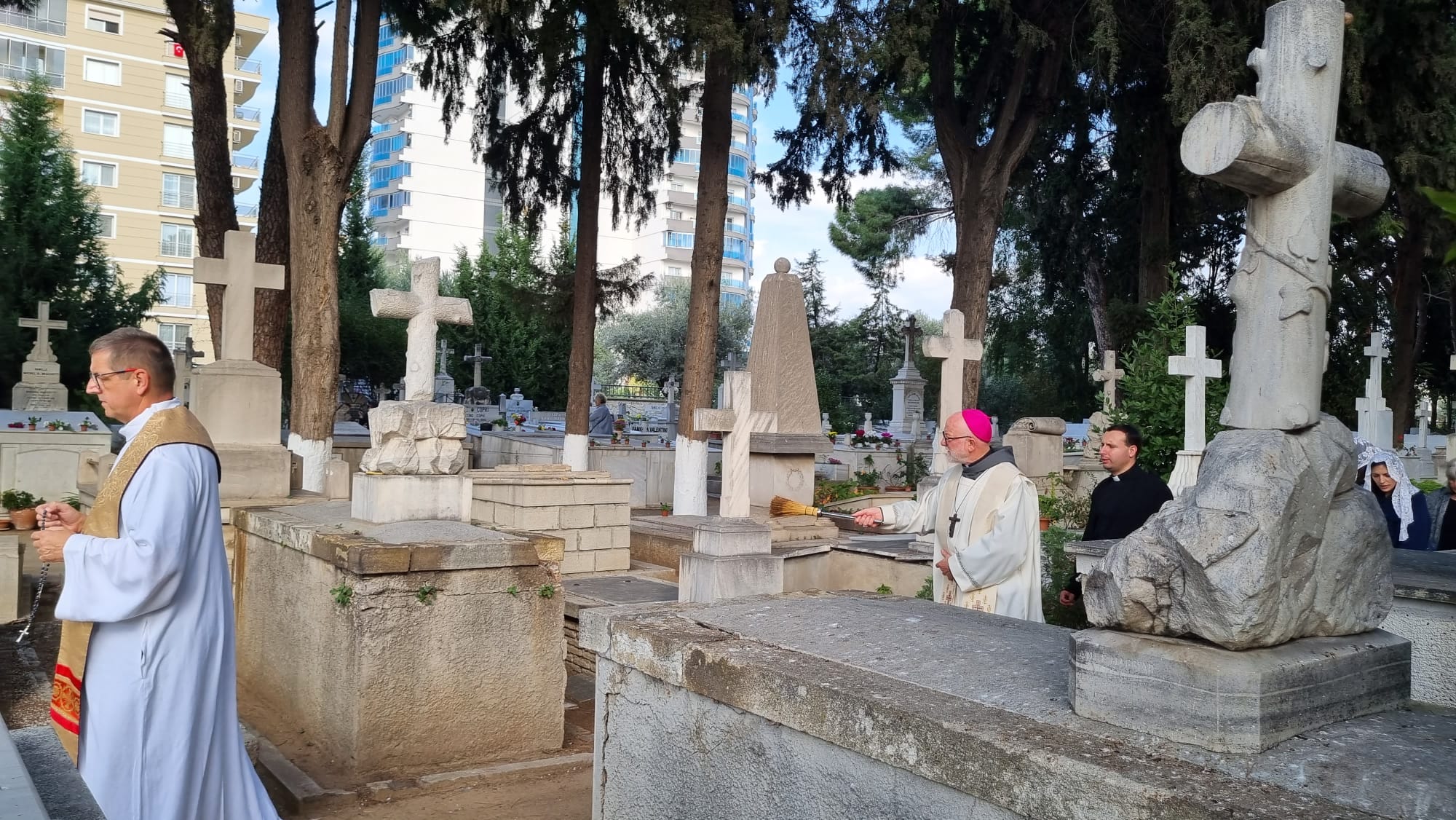 “Tüm Azizler Görkemli Bayramı” 1 Kasım Çarşamba günü, Karşıyaka Soğukkuyu Katolik Mezarlığı’nda İzmir Latin Katolik Kilisesi Başepiskoposu Monsenyör Martin Kmetec’in katılım ile ve Göztepe Notre-Dame de Lourdes Kilisesi’nin Rahibi Peder Ireneusz Bochynski tarafından yönetilen İtalyanca ayin ile kutlandı.