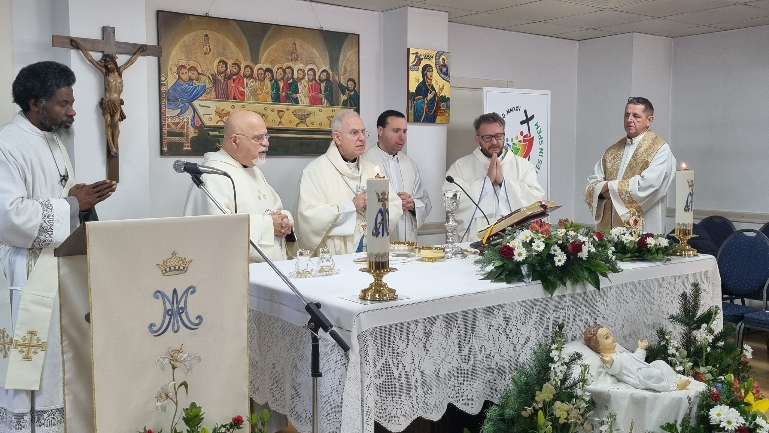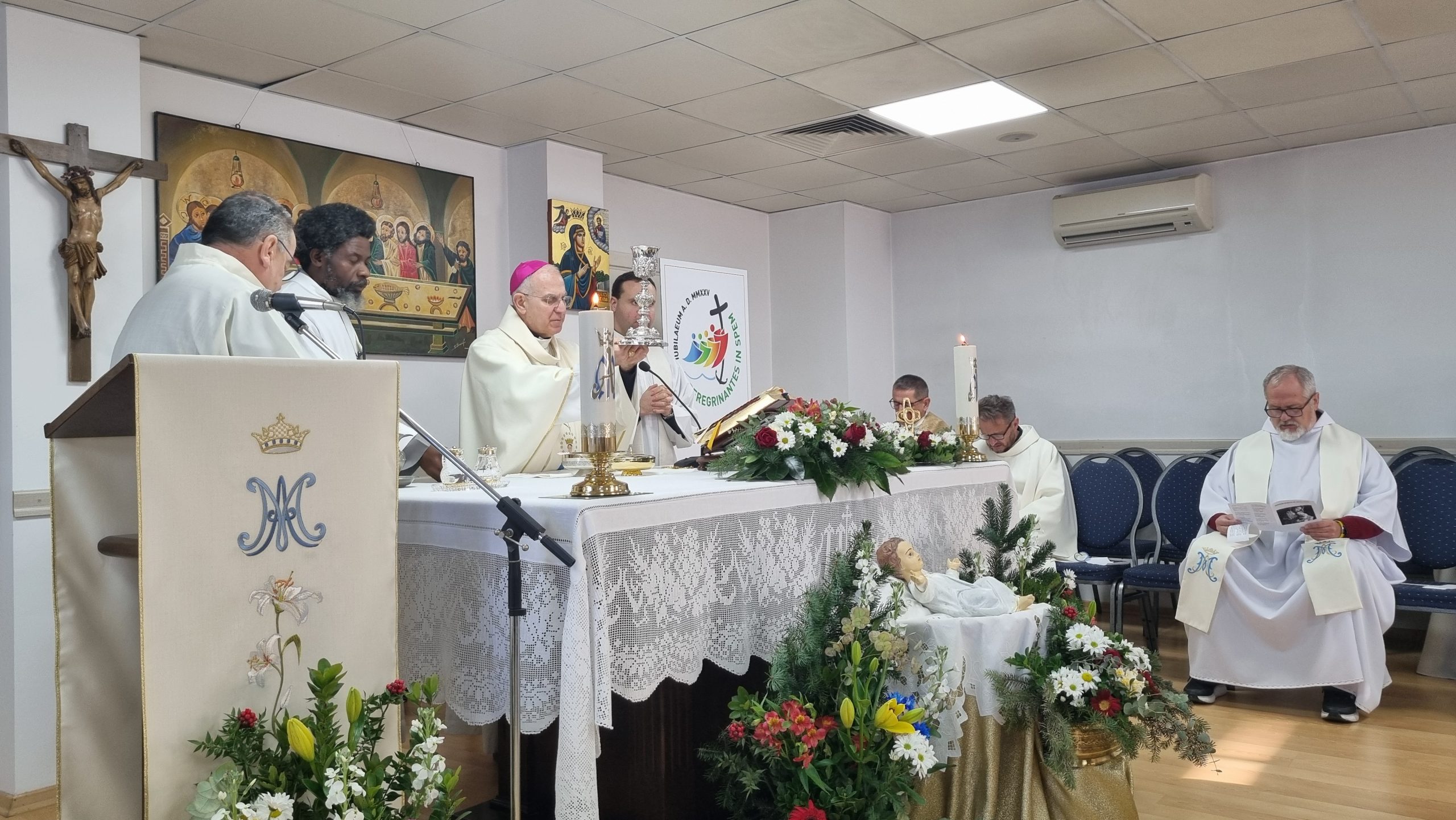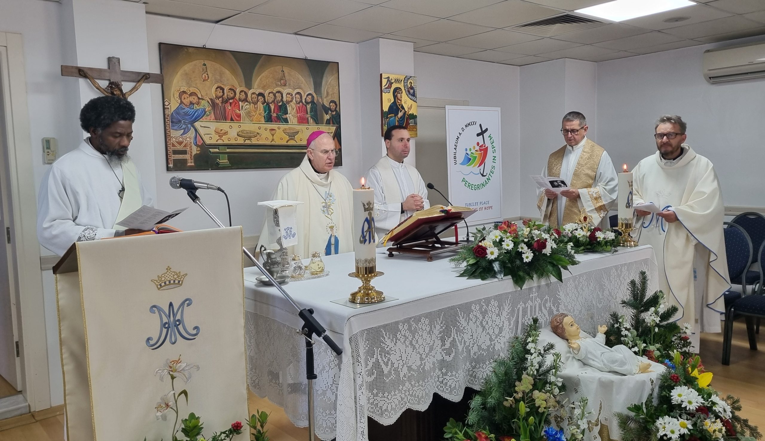 Ardından Monsenyör Julio verdiği vaazında: “Şu anda Meryem’in evinde bulunuyoruz ve bugün Allahı’ın Annesi olan Meryem’i kutluyoruz” anlattı.