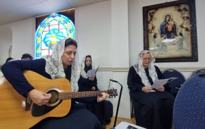 Kuşadası cemaatinin bir kısmının ve yanı sıra çeşitli birkaç ziyaretçilerin de yer aldığı Ayin, İngilizce olarak yapıldı.