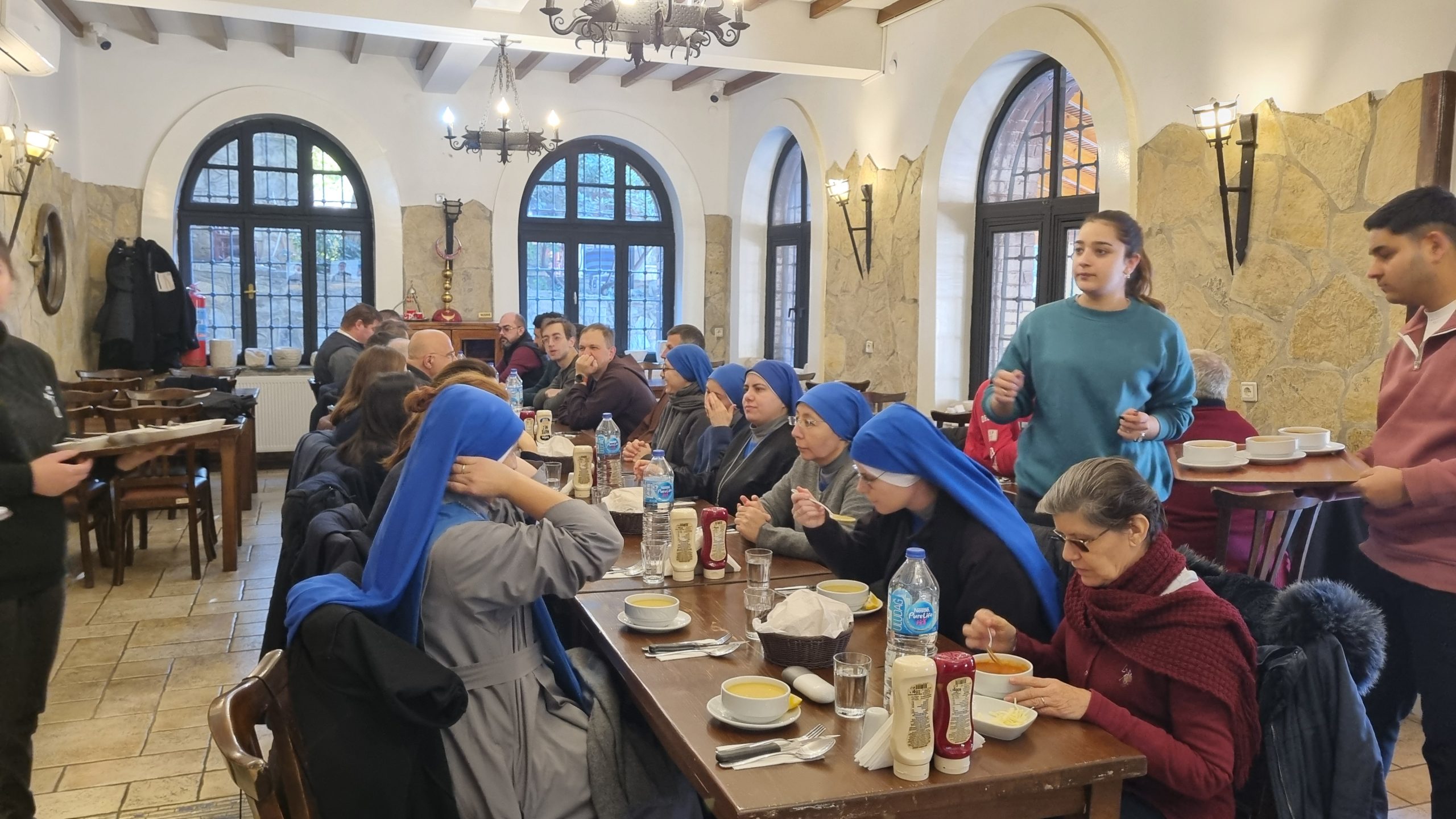 İzmir Episkoposluğunun Şansölyesi Peder Alessandro Amprino, Meryem Ana Evi’nin Papazları Peder Robert Bondea ve Peder Pio Murat, Karşıyaka Azize Helena Kilisesi’nin Pederi Iosif Robu ve Diyakonu Fr Moyses, Göztepe Notre-Dame de Lourdes Kilisesnin Başpederi İreneusz Bochynski, İstanbul Yeşilköy Aziz Stefano Kilisesi’nden gelen Peder Attilio ve Kudüs’ten gelen İtalyan Don Valerio eşlik ettiler.